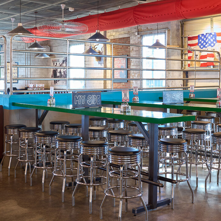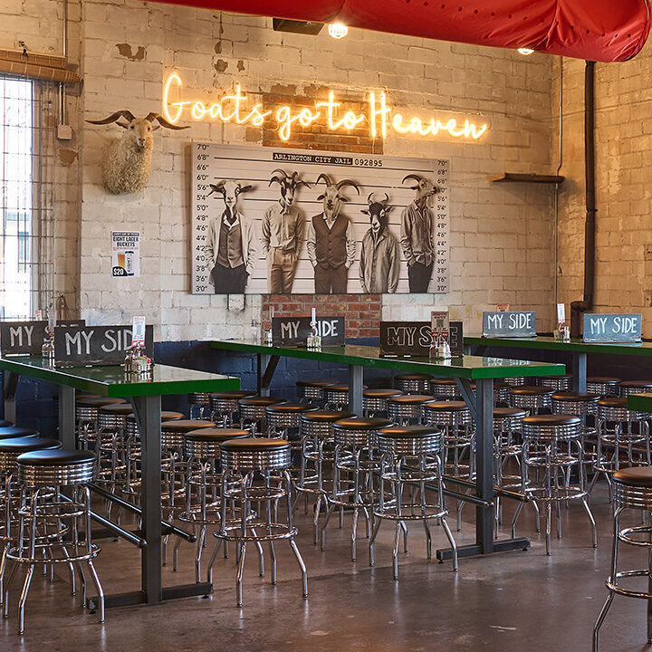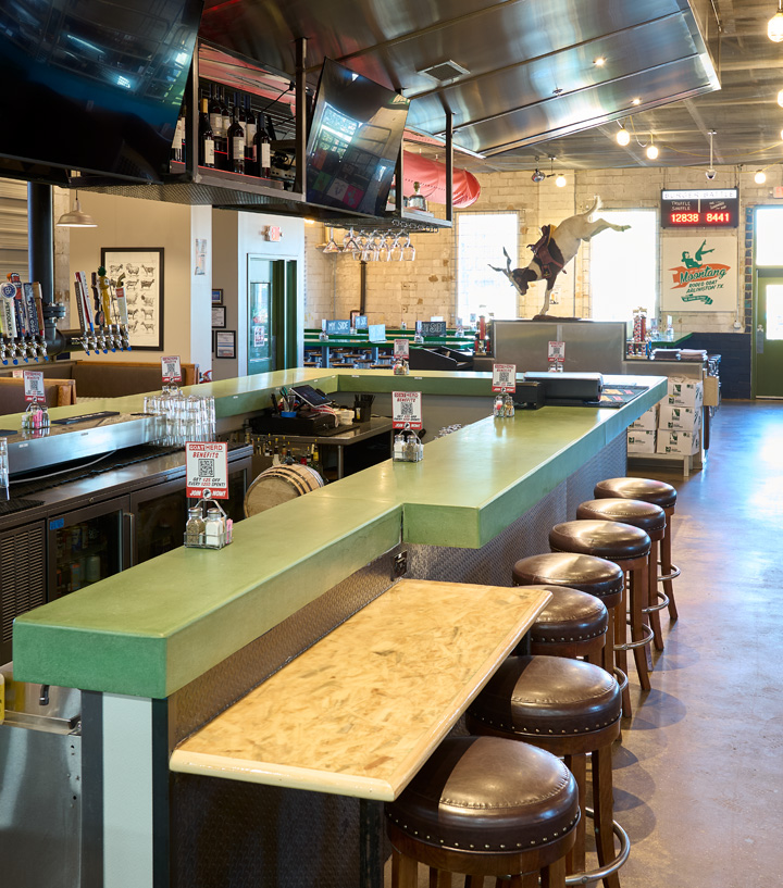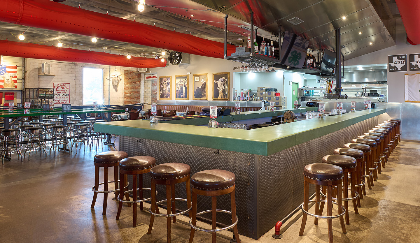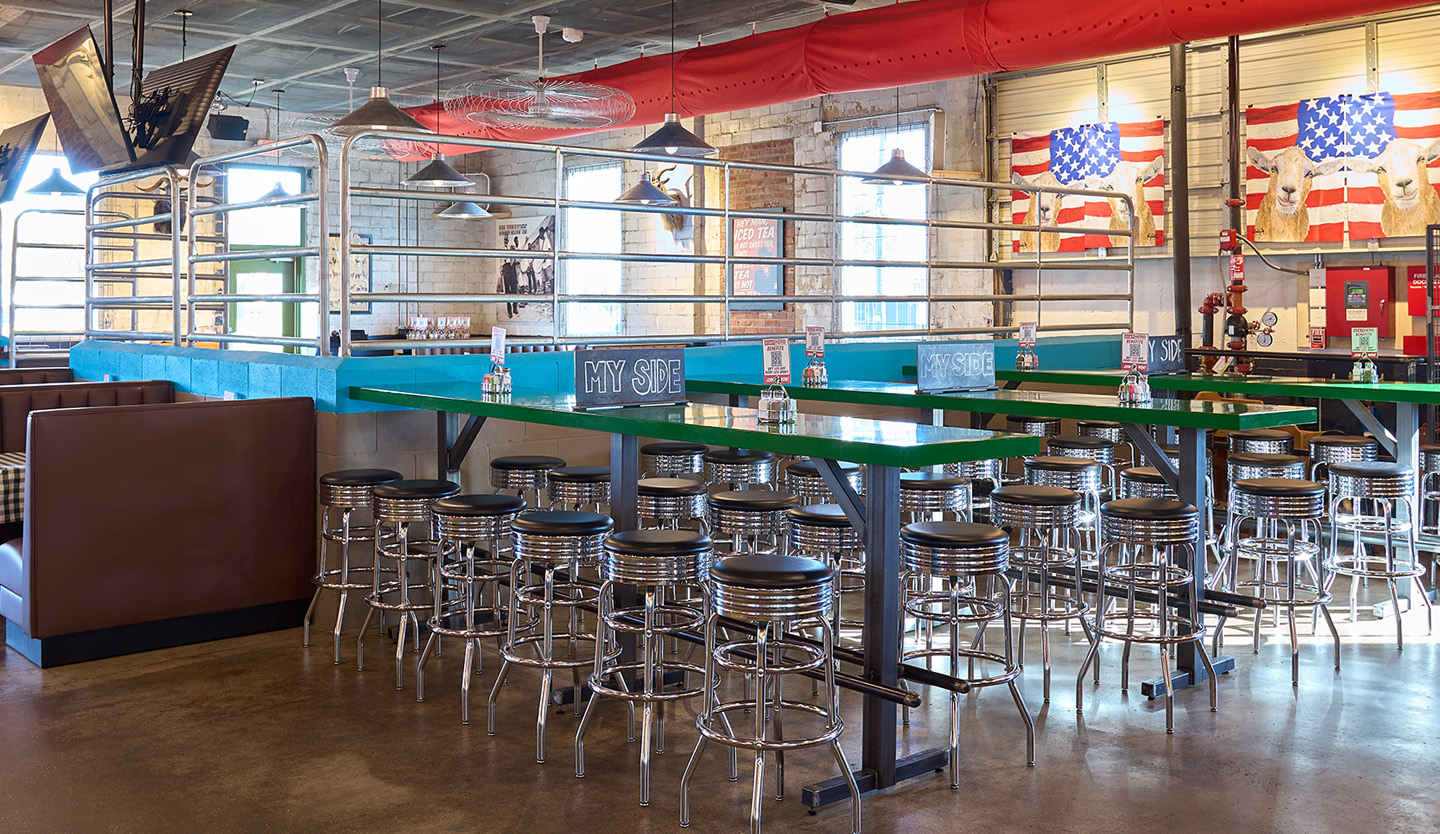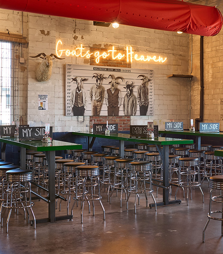 Rodeo Goat-Arlington, TX was our fourth project for Shannon Wynne, owner of 8.0 Management. Jones Baker was handed the “palette” of a vacant auto garage, and with extensive remodeling, we transformed what had been an eyesore in the neighborhood into a vibrant Rodeo Goat location complete with an outdoor patio.
